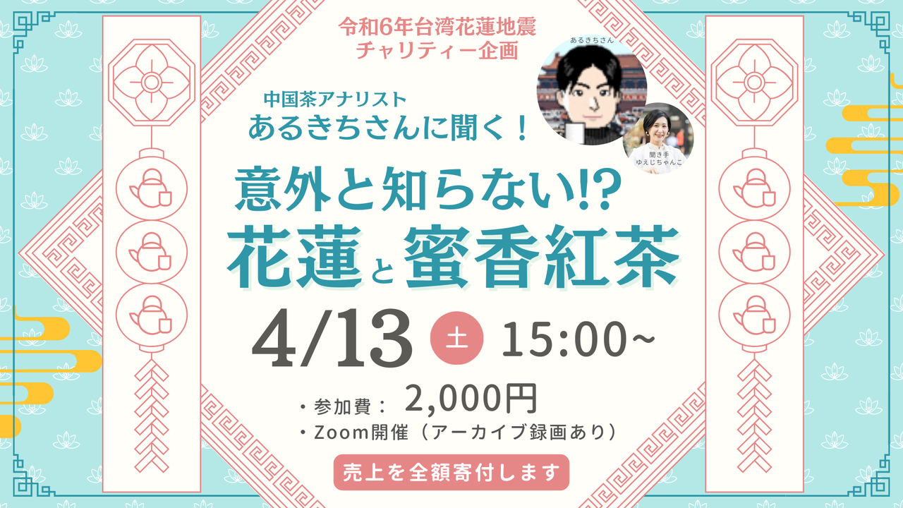 ※参加費は、4/3に発生した令和6年台湾花蓮地震の義援金として、支払手数料などを差し引いた利益全額を、台湾衛生福利部宛に寄付します