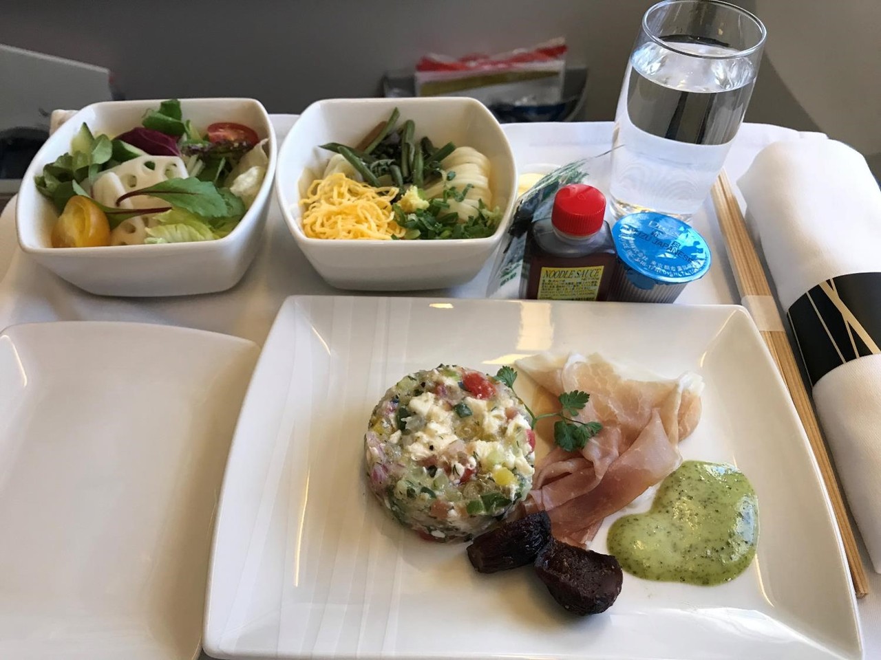 ビジネスクラスの機内食も美味しそうです